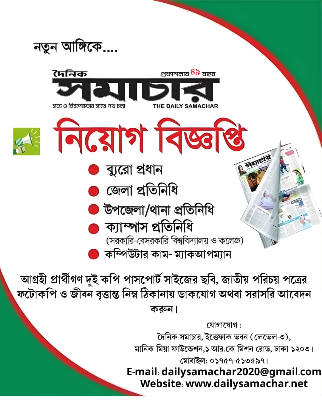 | সমাচার জবস কোন মন্তব্য নাইসমাচার জবস: শীর্ষস্থানীয় শিল্পপ্রতিষ্ঠান বসুন্ধরা গ্রুপে ‘ডেপুটি ম্যানেজার’ পদে জনবল