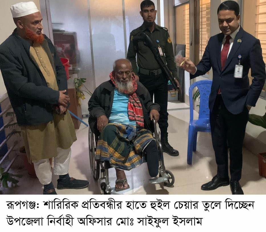 রূপগঞ্জে শারিরিক প্রতিবন্ধীকে হুইল চেয়ার উপহার