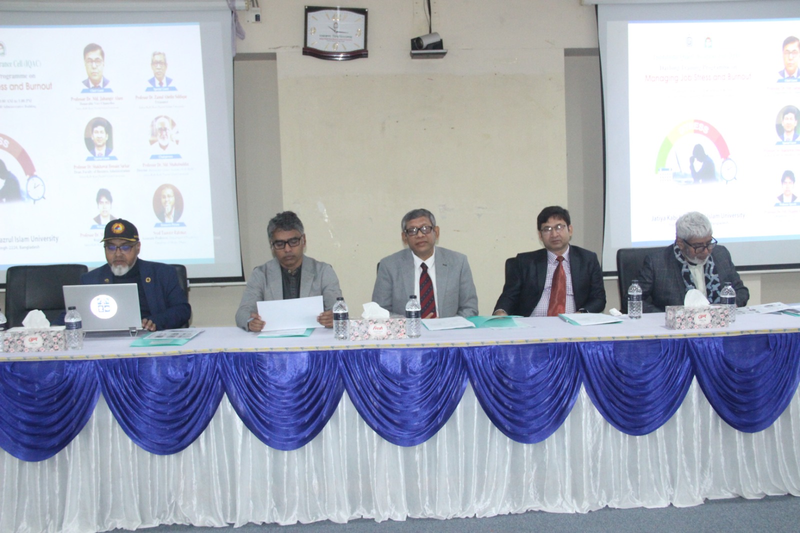 চৈতী রাণী রায়, নজরুল বিশ্ববিদ্যালয় প্রতিনিধি: জাতীয় কবি কাজী নজরুল ইসলাম বিশ্ববিদ্যালয়ের বিভাগীয় ও দপ্তর প্রধানগণের অংশগ্রহণে ‘Managing Job Stress and Burnout’ শীর্ষক দিনব্যাপী প্রশিক্ষণ কর্মসূচি অনুষ্ঠিত হয়েছে। ২৭ জানুয়ারি ২০২৬ তারিখ মঙ্গলবার সকালে পুরনো প্রশাসনিক ভবনের কনফারেন্স কক্ষে প্রশিক্ষণ কর্মসূচি শুরু হয়। বিশ্ববিদ্যালয়ের জরুরি কাজে ক্যাম্পাসের বাইরে অবস্থান করায় মাননীয় উপাচার্য প্রফেসর ড. মো. জাহাঙ্গীর আলম প্রধান অতিথি হিসেবে অনলাইনে যুক্ত থেকে প্রশিক্ষণ কর্মসূচির শুভ উদ্বোধন ঘোষণা করেন।