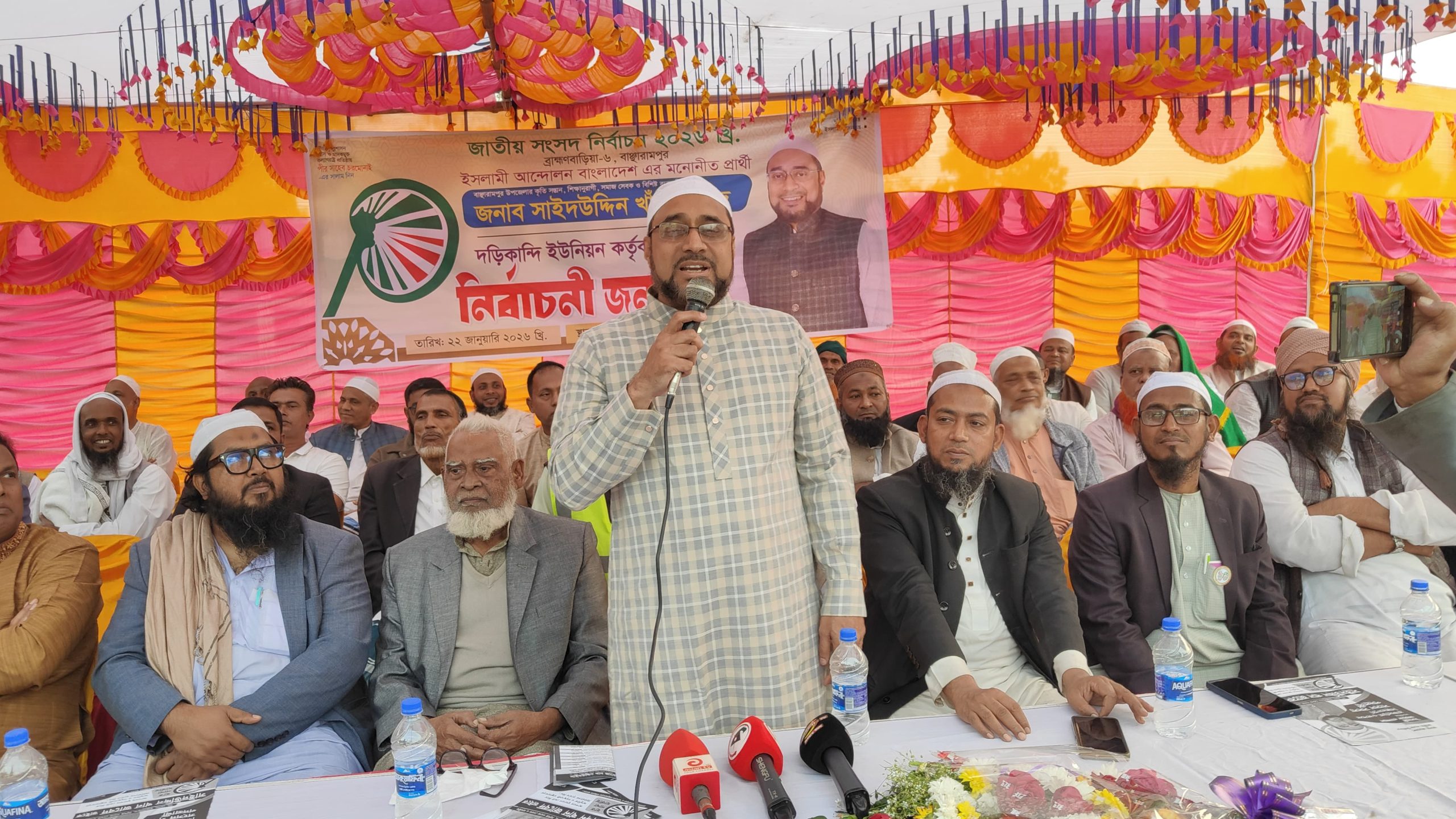 জনসভায় বীর মুক্তিযোদ্ধা গোলাম ইসহাকের সভাপতিত্বে প্রধান অতিথি হিসেবে বক্তব্য রাখেন ইসলামী আন্দোলন বাংলাদেশ ব্রাহ্মণবাড়িয়া-৬ বাঞ্ছারামপুর আসনের মনোনীত এমপি প্রার্থী সাইদ উদ্দিন খান জাবেদ।
