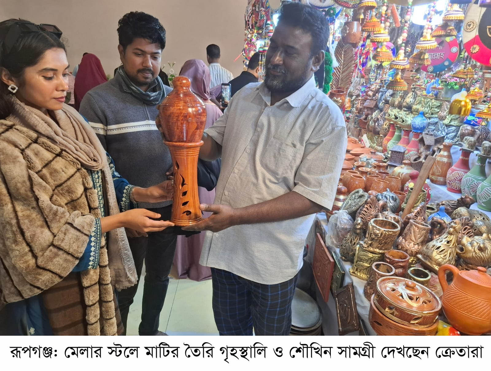 একসময় গ্রামবাংলার দৈনন্দিন জীবনে মাটির তৈরি জিনিসপত্রই ছিল গৃহস্থালির প্রধান অনুষঙ্গ। যখন সময়ের পরিবর্তনে প্লাস্টিক ও মেলামাইন পণ্যের দখলে তখন মাটির তৈরি পণ্যে মানুষের মন জয় করছে। এখনো মানুষের মনে মাটির জিনিসের প্রতি আলাদা টান রয়েছে। বাণিজ্যমেলায় ক্রেতাদের এসব পণ্য কেনার বড় সুযোগ হয়ে উঠেছে।