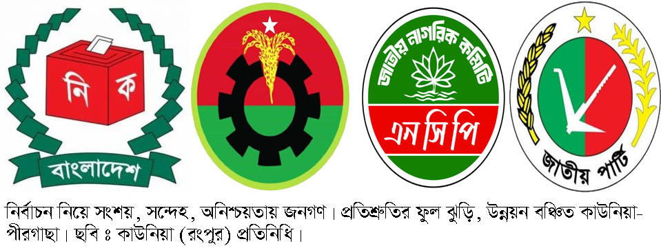 অবাধ সুষ্ঠু গ্রহনযোগ্য নির্বাচনের মধ্যমে গঠিত হবে তাদের পছন্দের সরকার। সেই নির্বাচন নিয়ে পিছু ছাড়ছেনা সংশয়, সন্দেহ, অনিশ্চয়তা।আর মাত্র ৪দিন পর নির্বাচন তবুও কাউনিয়া-পীরগাছার হাটে ঘাটে মাঠে সাধারণ মানুষের মাঝে নতুন করে আলোচনায় নির্বাচন কি ১২ ফেব্রুয়ারী হবে? ঢাকায় আন্দোলনের চিত্র দেখে সাধারন মানুষের মাঝে
