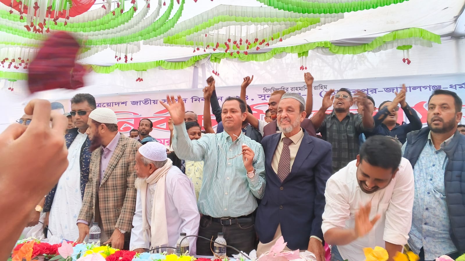 প্রধান অতিথি হিসেবে বক্তব্য রাখেন- বাংলাদেশ জাতীয়তাবাদী দল বিএনপি মনোনিত ধানের শীষের প্রার্থী (২২৪, সুনামগঞ্জ-১ আসন ধর্মপাশা, মধ্যনগর, তাহিরপুর ও জামালগঞ্জ উপজেলার নির্বাচনী এলাকার প্রার্থী জননেতা কামরুজ্জামান কামরুল। প্রধান বক্তা- বাংলাদেশ জাতীয়তাবাদী দল বিএনপির জেলা কমিটির সদস্য ও সাবেক ধর্মপাশা উপজেলা পরিষদের চেয়ারম্যান বার বার কারা নির্যাতিত জননেতা আব্দুল মোতালিব খান।