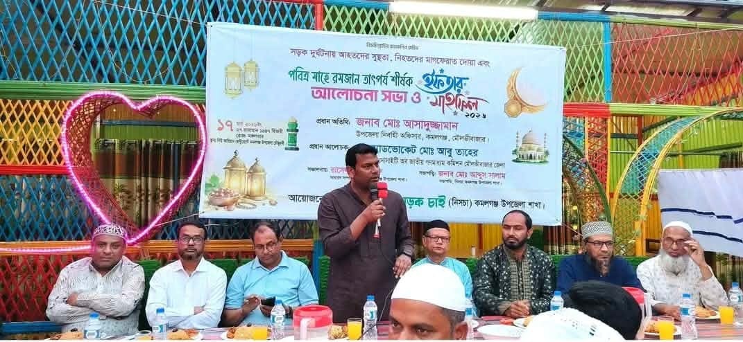 কমলগঞ্জ (মৌলভীবাজার) প্রতিনিধি : সড়ক দুর্ঘটনায় নিহতদের আত্মার মাগফেরাত এবং আহতদের দ্রুত সুস্থতা কামনায় মৌলভীবাজারের কমলগঞ্জে আলোচনা সভা, দোয়া ও ইফতার মাহফিল অনুষ্ঠিত হয়েছে। মঙ্গলবার (১৭ মার্চ) বিকেলে কমলগঞ্জ পৌর এলাকার নিউ আরিয়ান হোটেল এন্ড রেস্টুরেন্টে জাতীয় সামাজিক ও স্বেচ্ছাসেবী সংগঠন ‘নিরাপদ সড়ক চাই’ (নিসচা) কমলগঞ্জ উপজেলা শাখার উদ্যোগে এই অনুষ্ঠানের আয়োজন করা হয়।