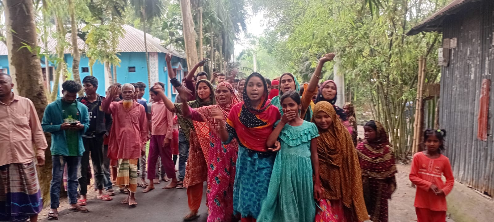 বিক্ষোভকারীরা জানায়, অহেতুক গ্রামবাসীর নামে মিথ্যা মামলা দায়ের করলে প্রকৃত জবাব দেওয়া হবে।
