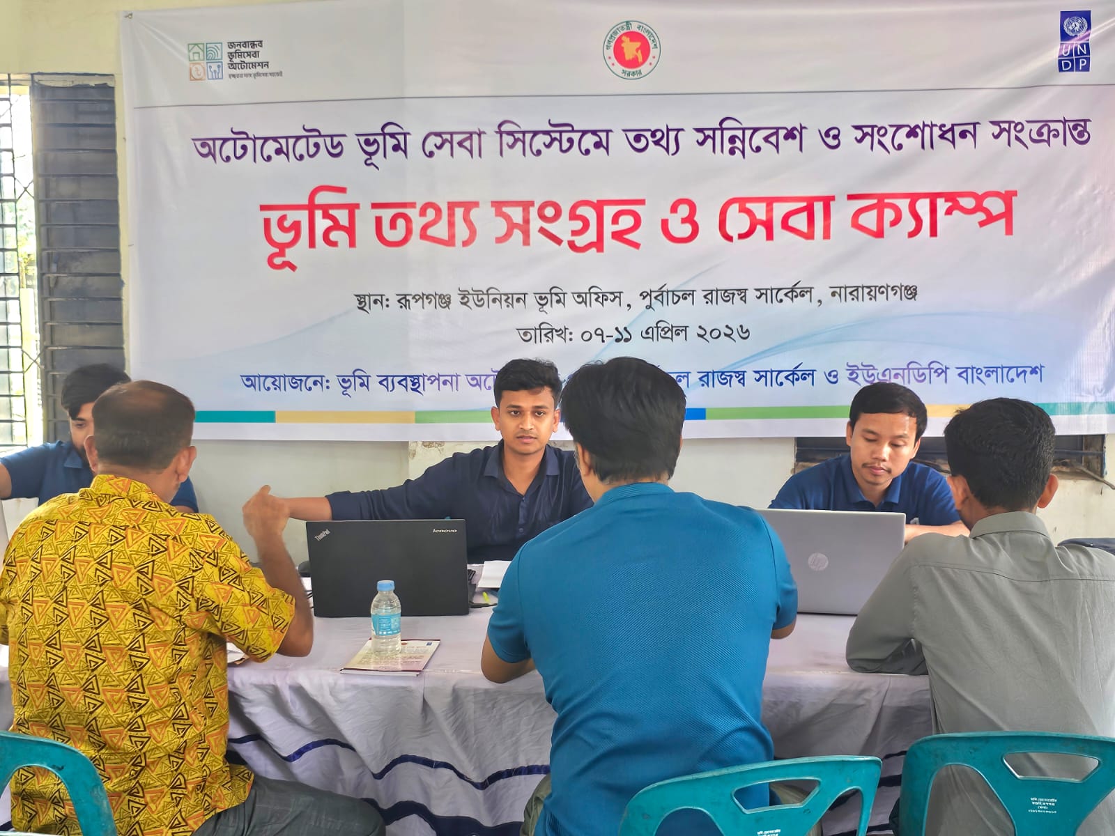 মোঃ আবু কাওছার মিঠু-রূপগঞ্জ নারায়ণগঞ্জ প্রতিনিধি : নারায়ণগঞ্জের রূপগঞ্জে ভূমি ব্যবস্থাপনা সেবাকে আধুনিক ও সহজলভ্য করতে “ভূমি তথ্য সংগ্রহ ও সেবা ক্যাম্প” শুরু হয়েছে। ভূমি মন্ত্রণালয়ের উদ্যোগে এবং UNDP Bangladesh এর সহযোগিতায় পরিচালিত এই কার্যক্রম ৭ এপ্রিল ২০২৬ থেকে ১১ এপ্রিল ২০২৬ পর্যন্ত চলবে।