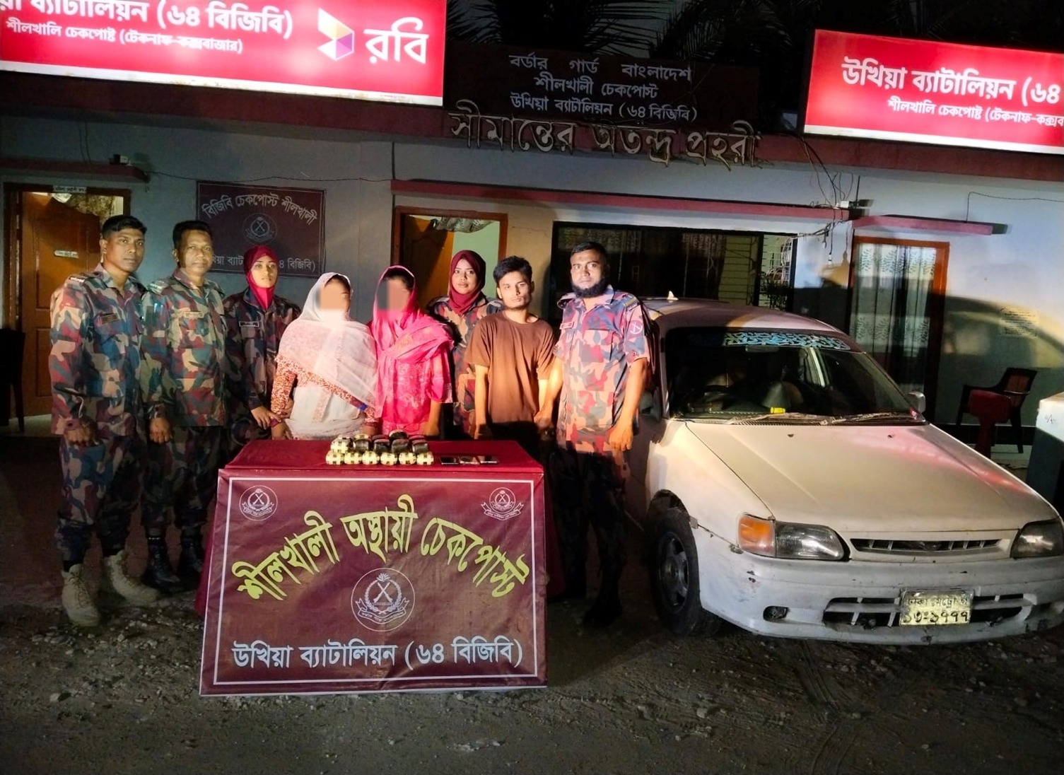 ঘটনাস্থল থেকে মাদক পরিবহনে ব্যবহৃত প্রাইভেটকার ও তিনটি অ্যান্ড্রয়েড মোবাইল ফোন জব্দ করা হয়েছে।